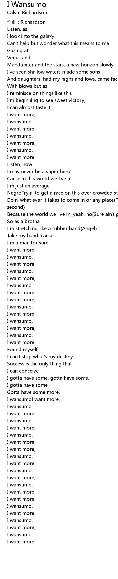 | I wansumoI want more, | |