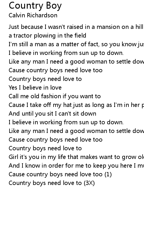 Country boys need love to (3X) |