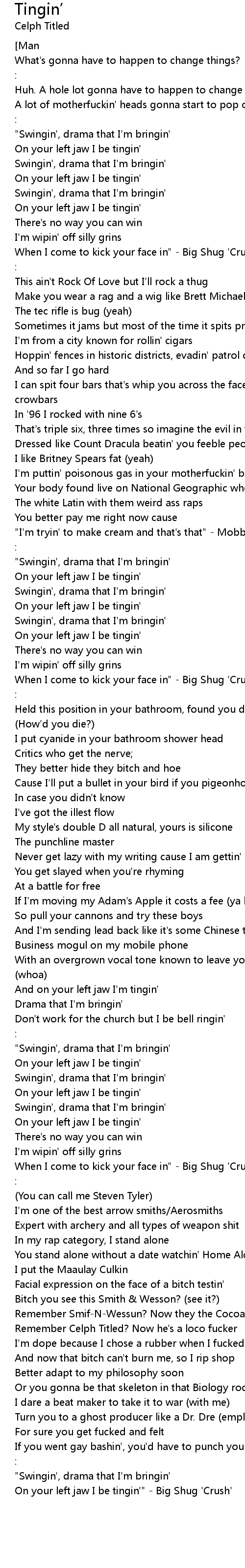 On your left jaw I be tingin'" - Big Shug 'Crush'