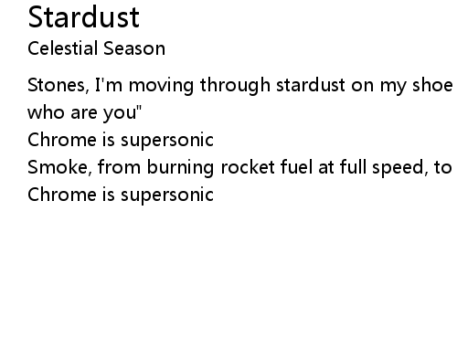 Stones, I'm moving through stardust on my shoe responding to a tune "hi there, who are you"
