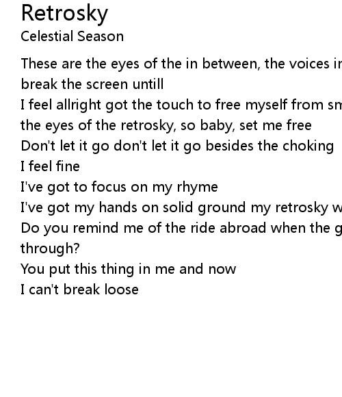 I feel allright got the touch to free myself from smoke in my belief these are the eyes of the retrosky, so baby, set me free |