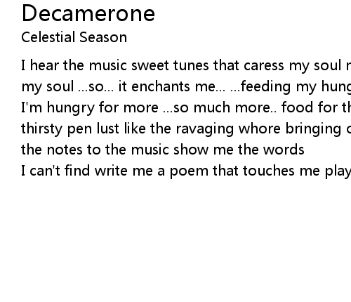 | I hear the music sweet tunes that caress my soul music begging for music it woes my soul ...so... it enchants me... ...feeding my hunger but | |