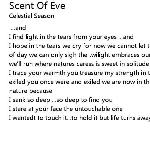 I hope in the tears we cry for now we cannot let them fall anymore in the light of day we can only sigh the twilight embraces our souls uproar through the woods we'll run where natures caress is sweet in solitude we find each other |
