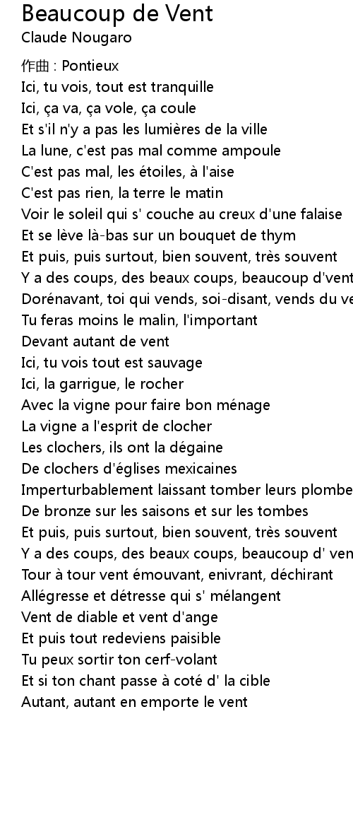 | 歌曲 | Beaucoup de Vent |
