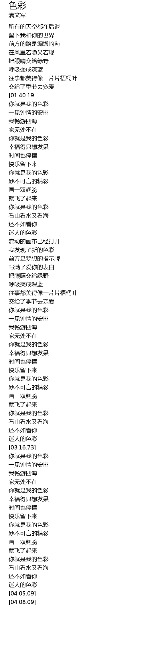 | [03:46.30] | nǐ jiù shì wǒ de sè cǎi |