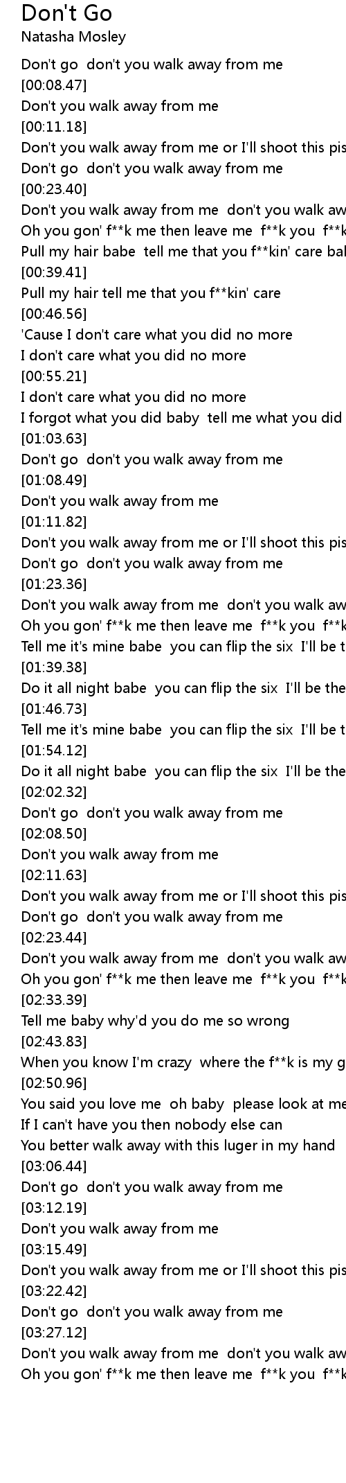 Don't you walk away from me don't you walk away from me |