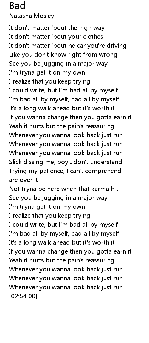 I could write, but I'm bad all by myself |