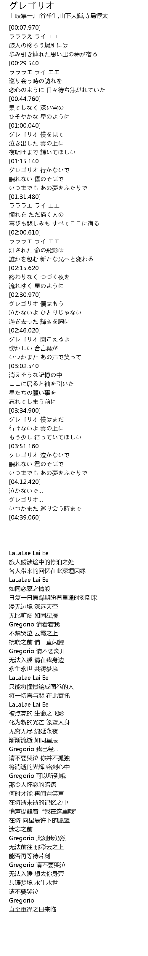 | [03:52.770] | Gregorio 请不要哭泣 |