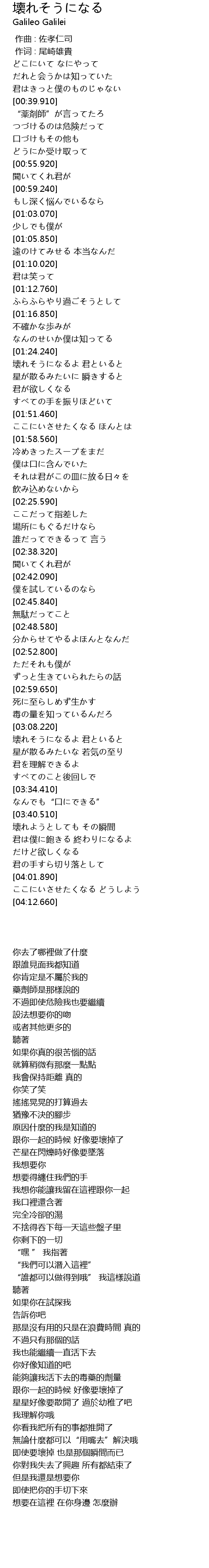 | [03:41.190] | 即使要壞掉 也是那個瞬間而已 |