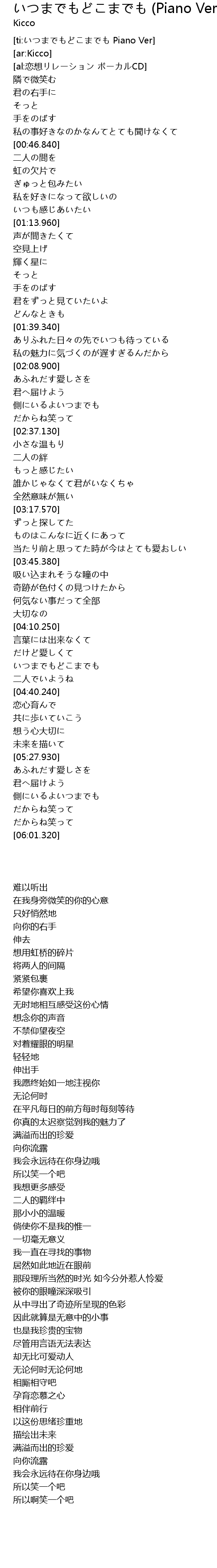 | [ti:いつまでもどこまでも Piano Ver] | |