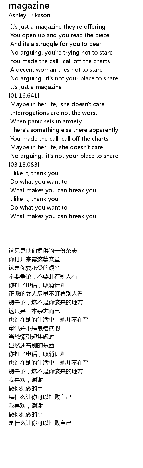 | [01:17.000] | Maybe in her life‚ she doesn't care |