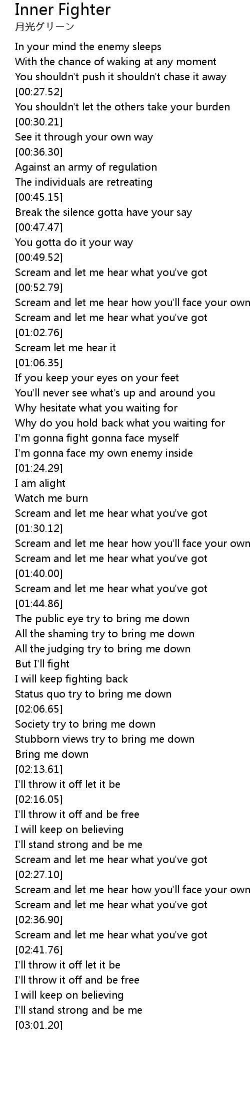 Scream and let me hear how you'll face your own fight |
