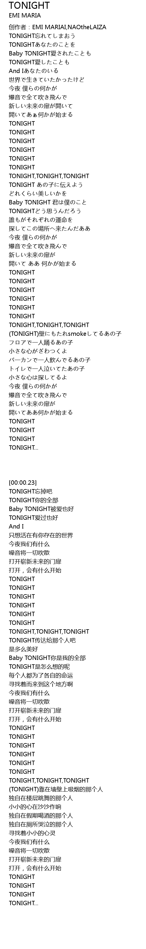 | [00:23.09] | TONIGHT ài |