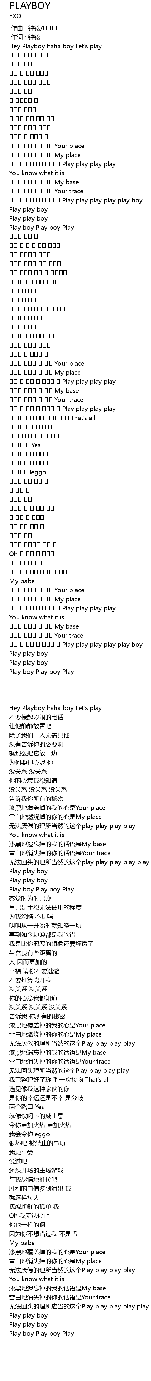 | [00:02.700] | Hey Playboy haha boy Let' s play |