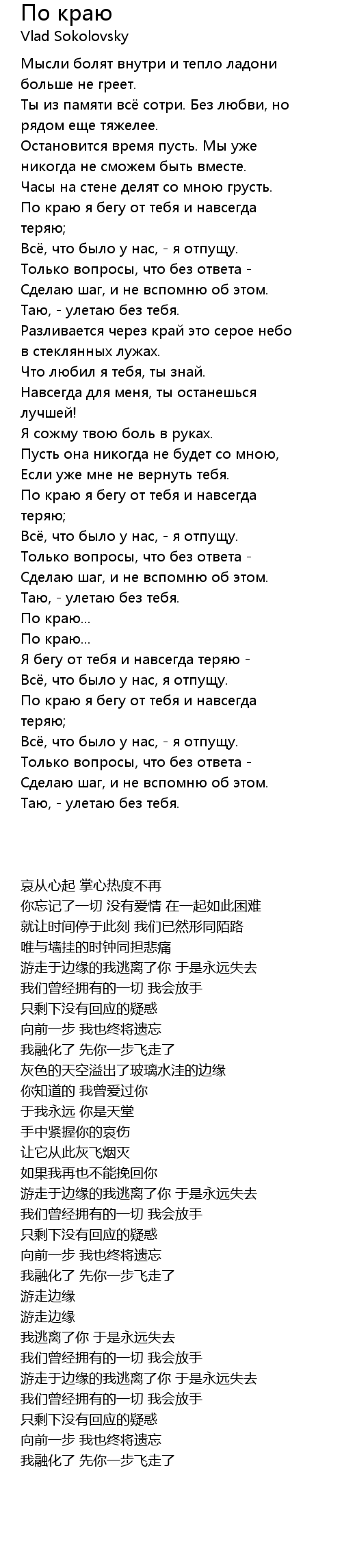 | [00:40.51] | По краю я бегу от тебя и навсегда теряю; |