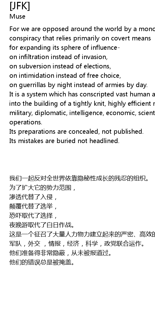 For we are opposed around the world by a monolithic and ruthless conspiracy that relies primarily on covert means |