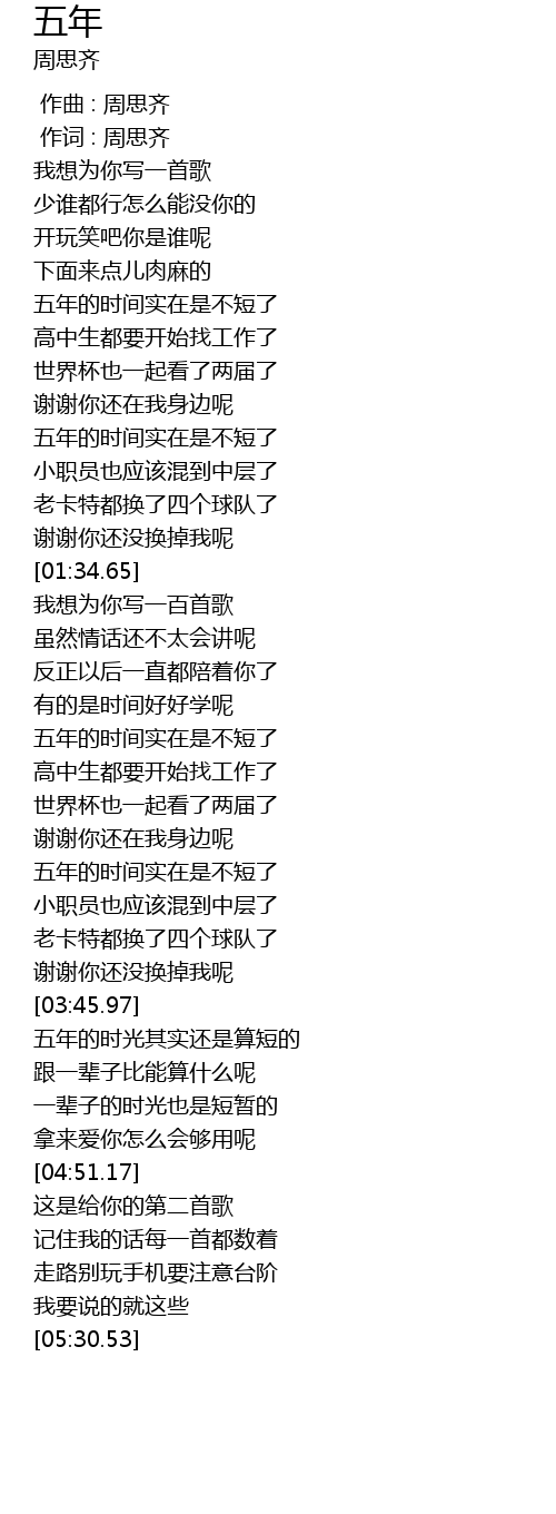 | [04:11.13] | 五年的时光其实还是算短的 |
