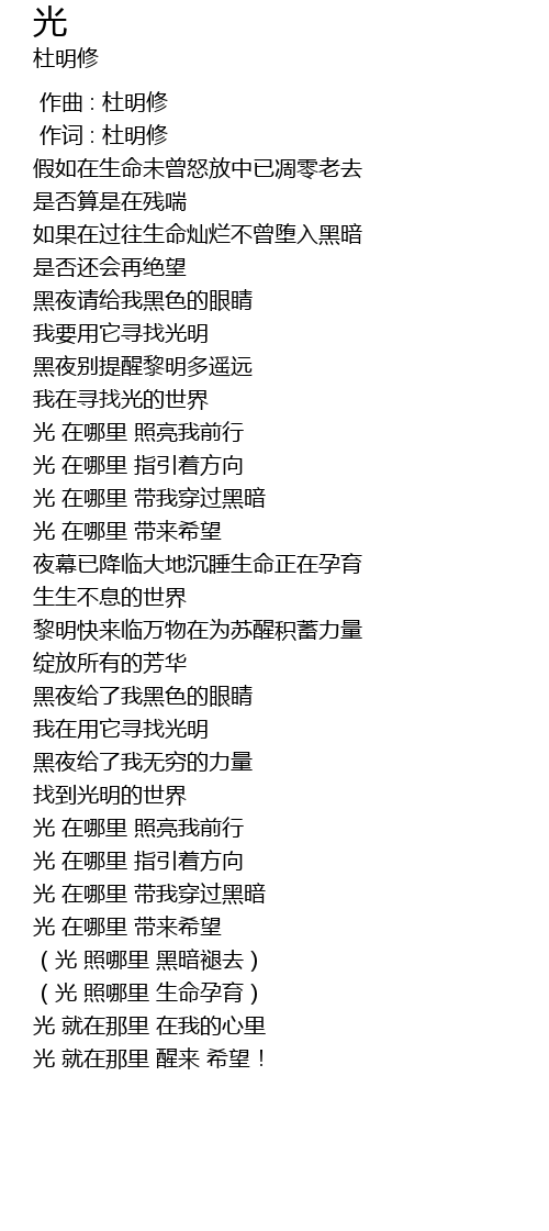 | [00:54.180] | wo yao yong ta xun zhao guang ming |