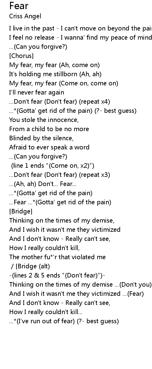 ...Fear ...*(Gotta' get rid of the pain) |