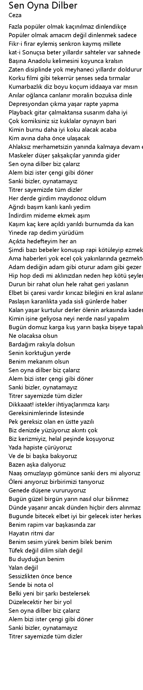 | Popü ler olmak amac m de il dinlenmek sadece | |