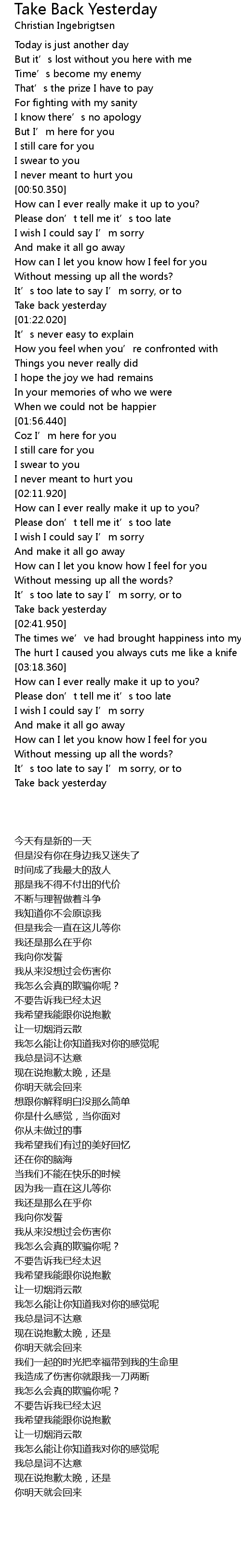| [03:49.000] | Take back yesterday |