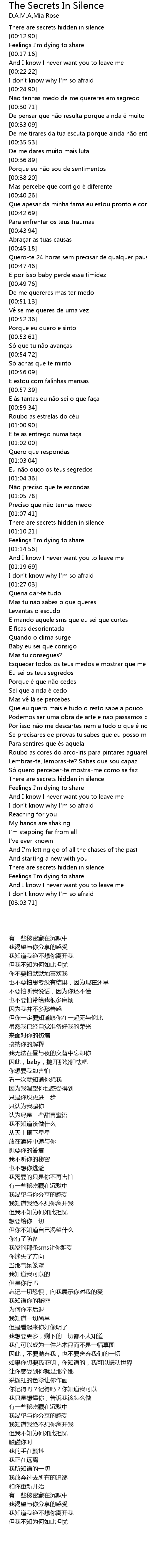| [02:43.72] | There are secrets hidden in silence |