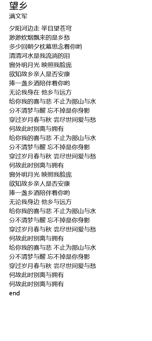 | [00:33] | 渺渺炊烟飘来的是乡愁 |