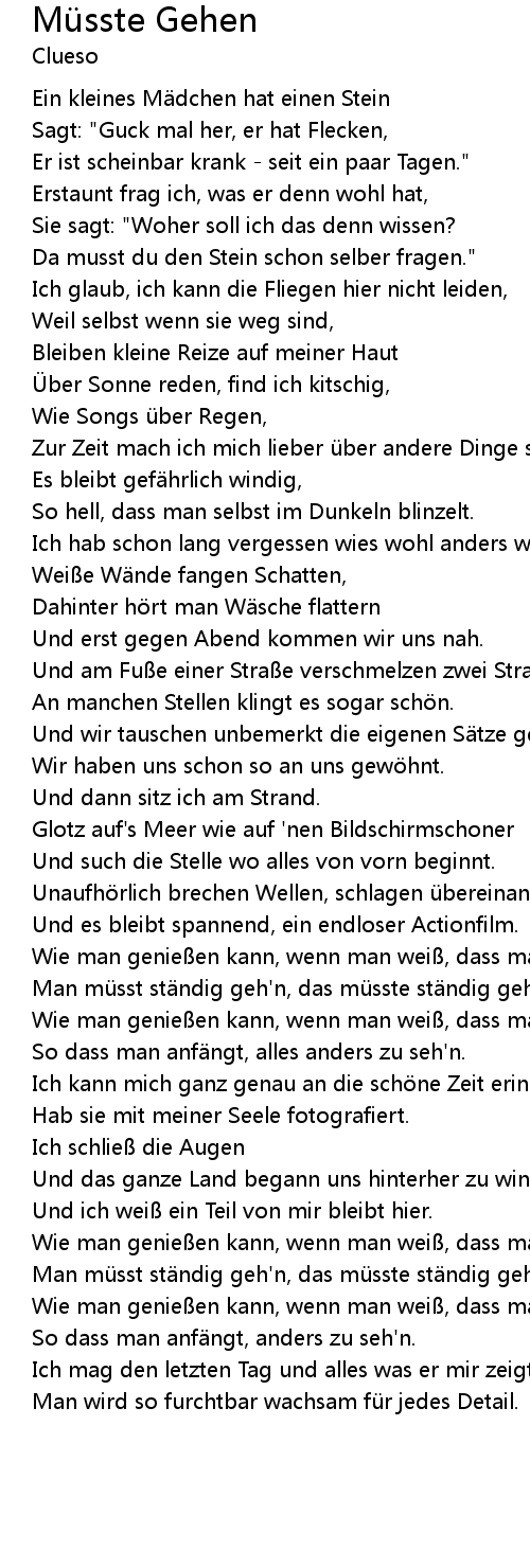 | Man mü sst st ndig geh' n, das mü sste st ndig geh' n. | |