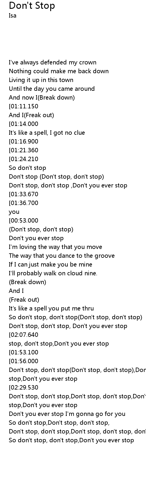 Don't stop, don't stop(Don't stop, don't stop),Don't stop, don't stop,Don't you ever stop