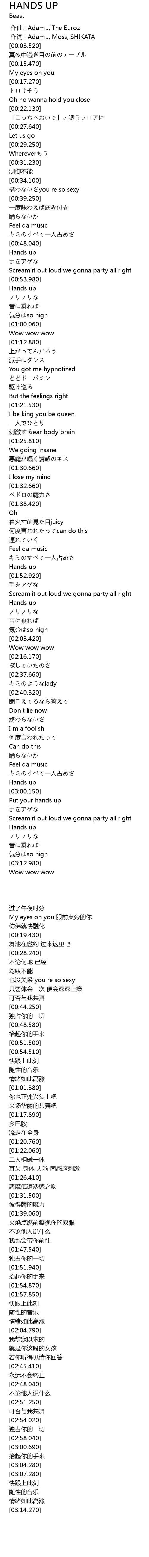 | [03:00.690] | Put your hands up |