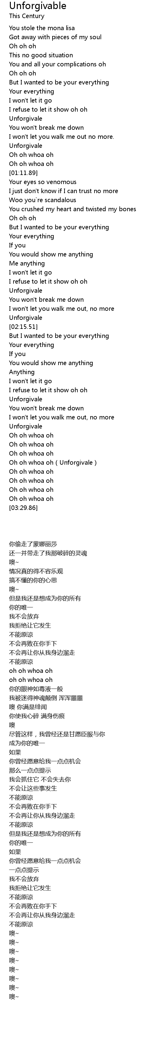 | [03:17.52] | Oh oh whoa oh Unforgivale |