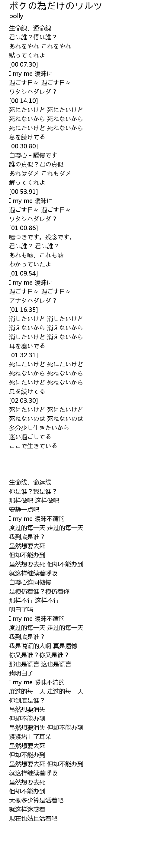 | [00:07.64] | I my me 曖昧に |