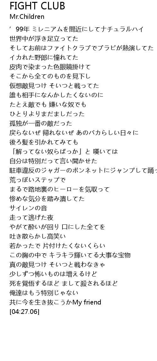 | [00:34.26] | そしてお前はファイトクラブでブラピが熱演してた |