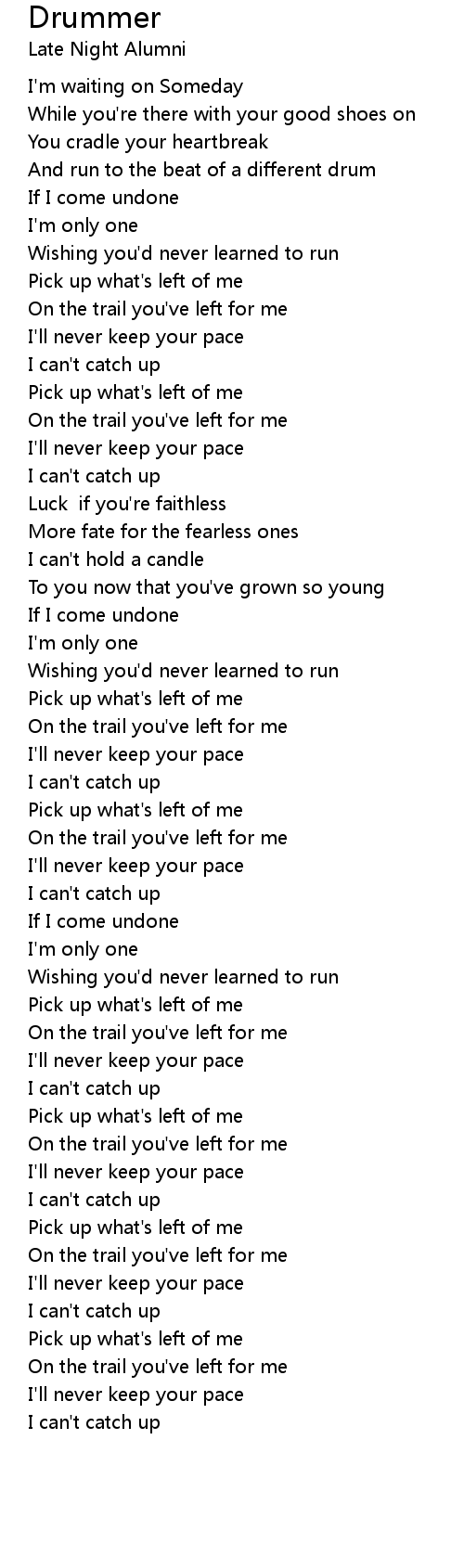 I'll never keep your pace |