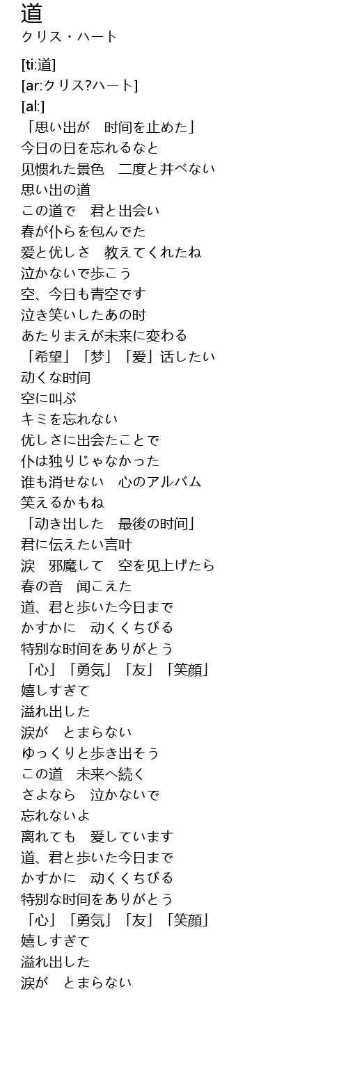 | [03:51.97] | 道、君と歩いた今日まで |