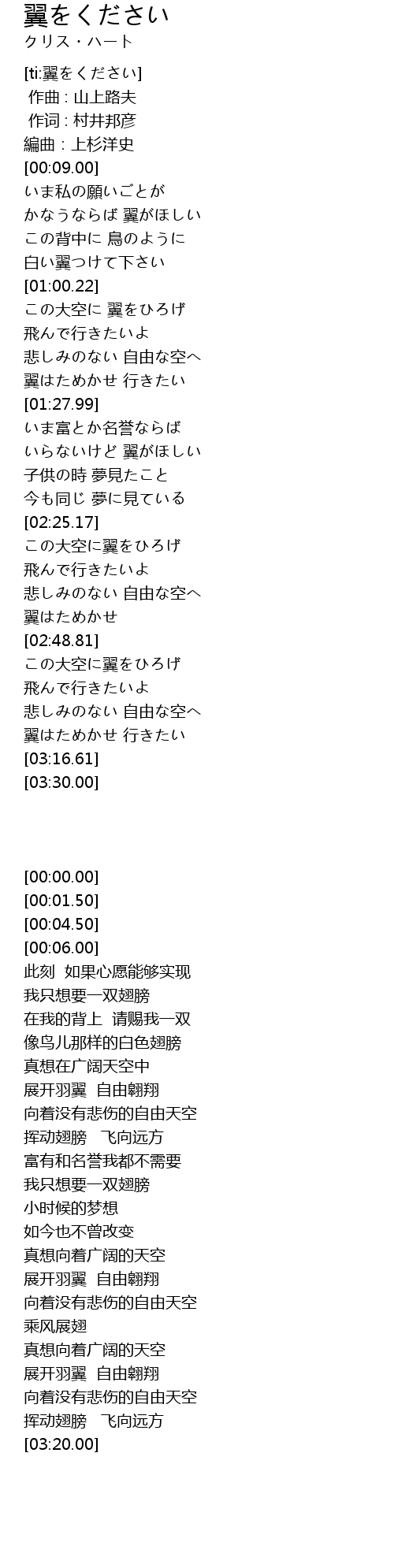| [00:46.61] | 像鸟儿那样的白色翅膀 |