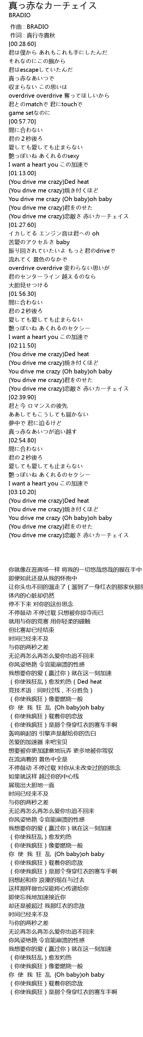 | [02:20.87] | (You drive me crazy)恋敵さ 赤いカーチェイス |