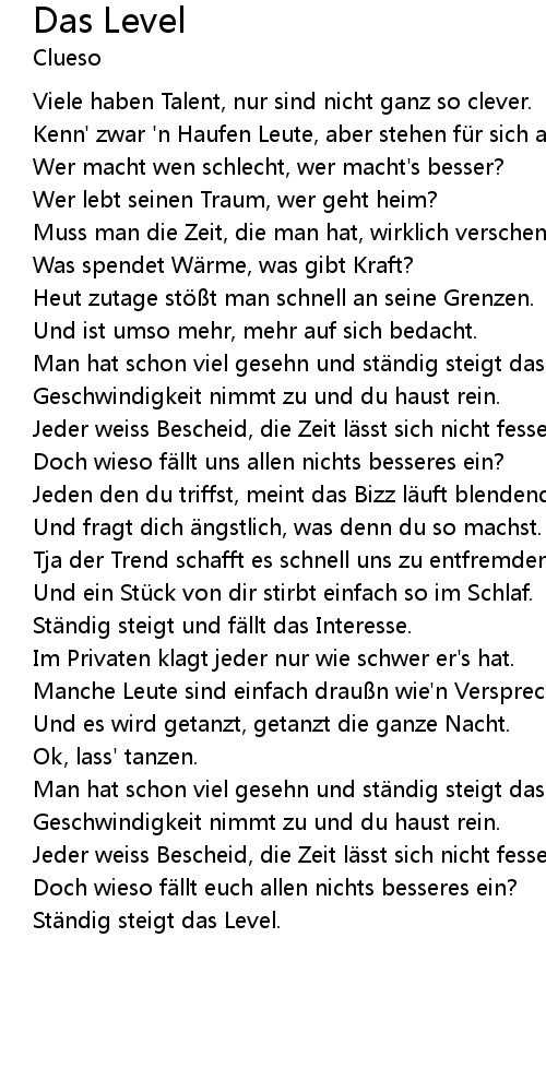 | Man hat schon viel gesehn und st ndig steigt das Level. | |