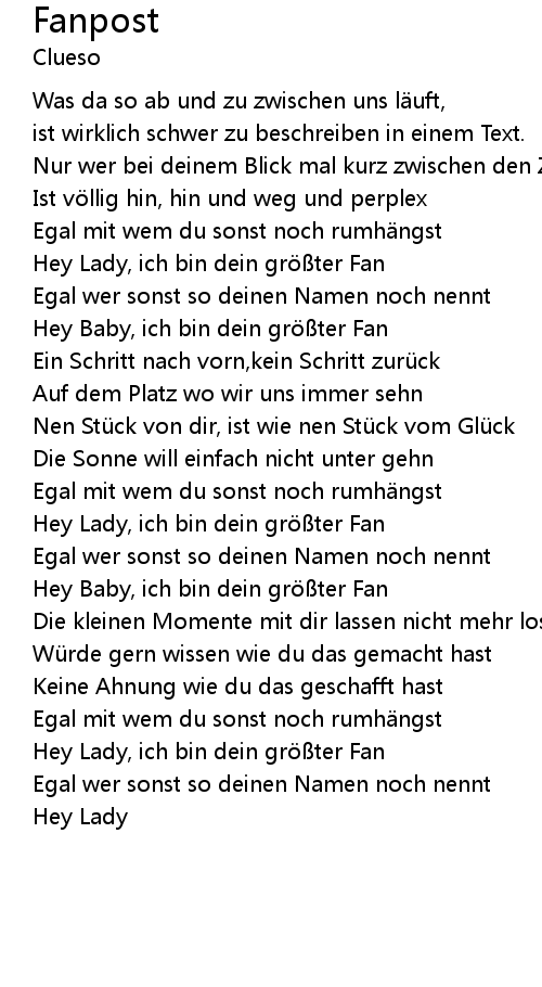 | Nur wer bei deinem Blick mal kurz zwischen den Zeilen liest | |