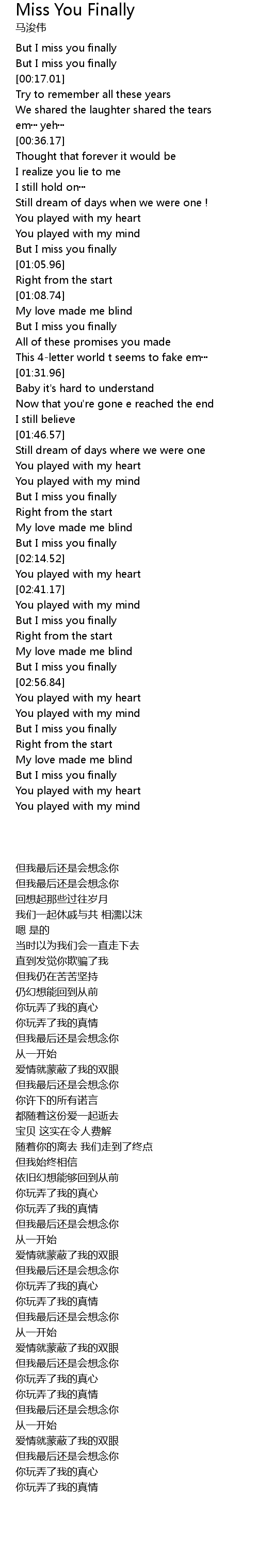 | [01:40.74] | 随着你的离去 我们走到了终点 |