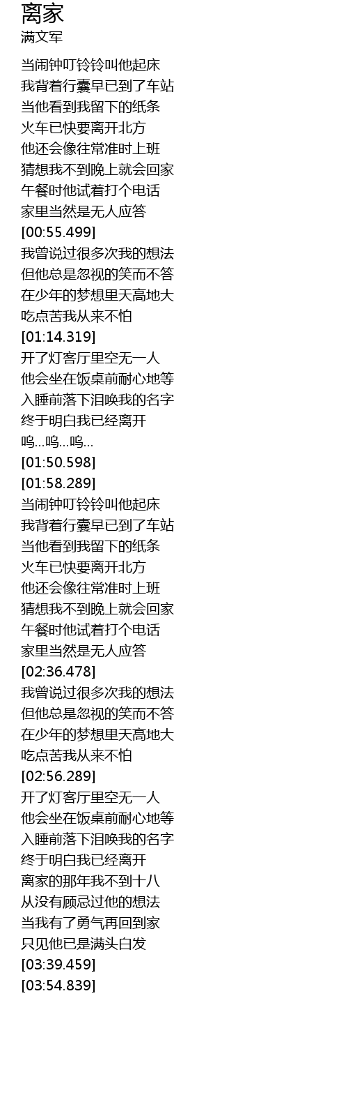 | [02:03.379] | 我背着行囊早已到了车站 |
