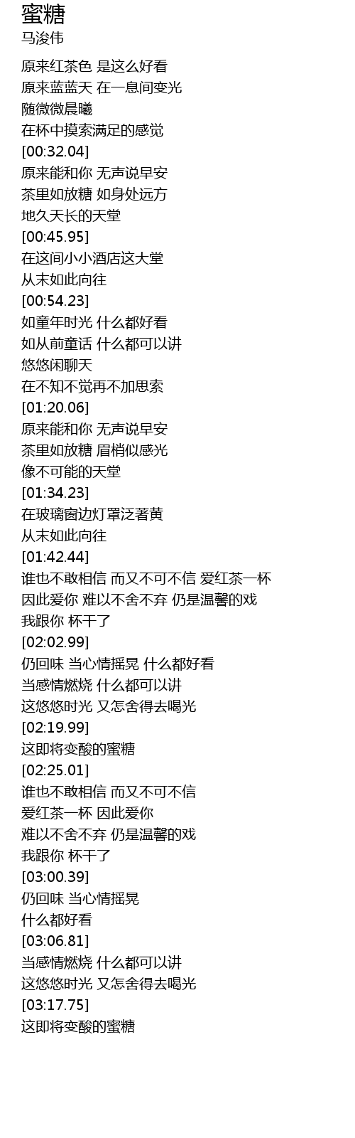 | [03:18.80] | 这即将变酸的蜜糖 |
