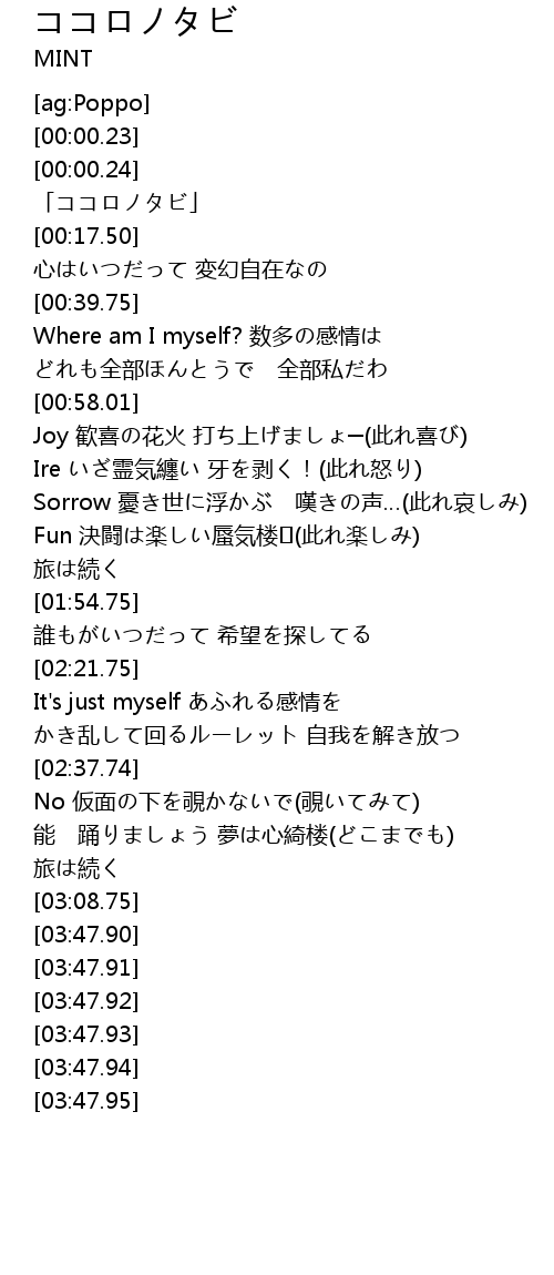 | [00:44.75] | Where am I myself? 数多の感情は |