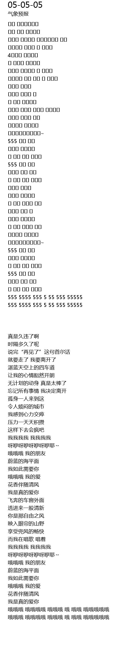 | [03:40.18] | 555 5555 555 5 55 555 55555 |