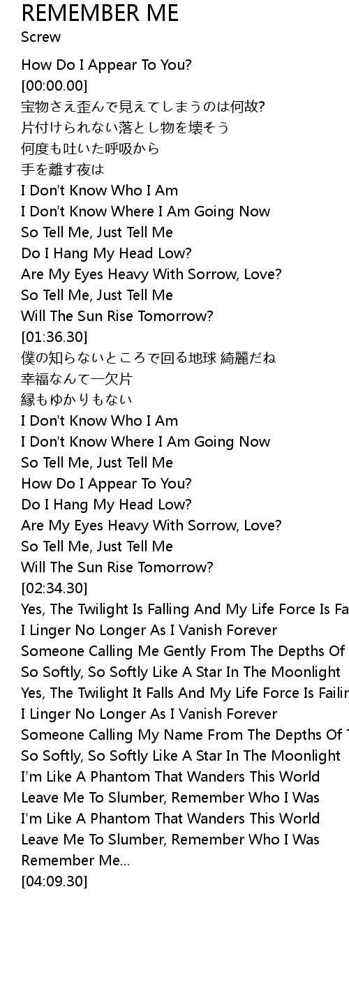 | [04:02.30] | Remember Me... |