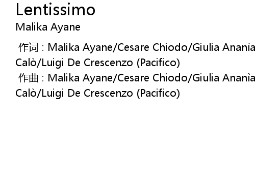 | [00:00.000] | 作词 : Malika Ayane/Cesare Chiodo/Giulia Ananìa/Antonio Calò/Luigi De Crescenzo (Pacifico) |