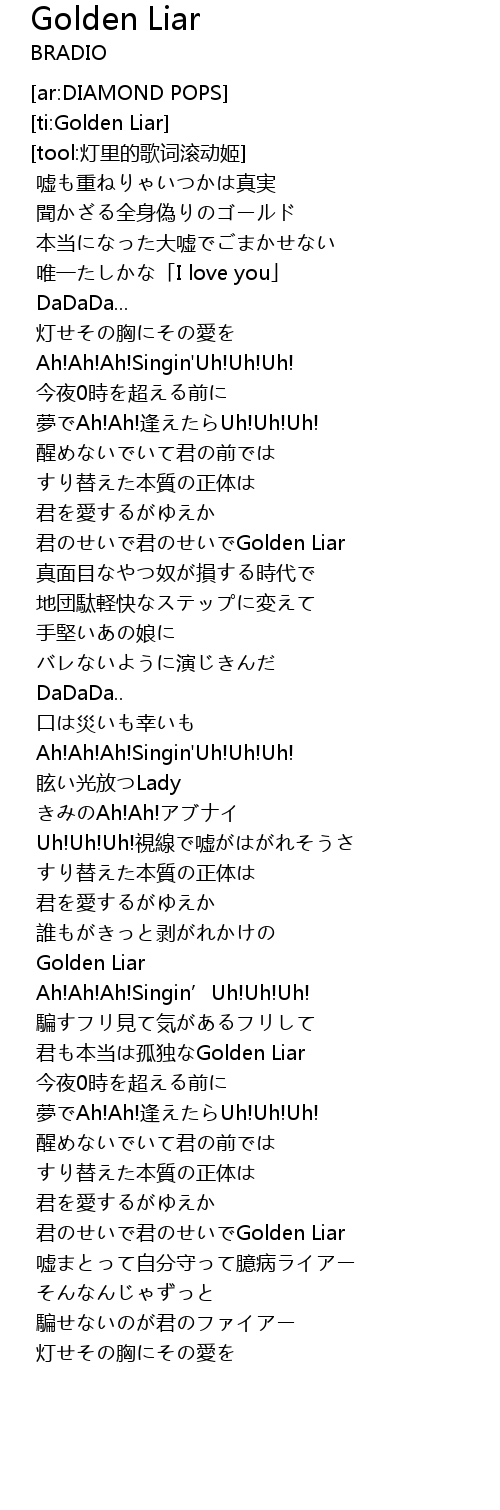 | [02:26.823] | 君も本当は孤独なGolden Liar |