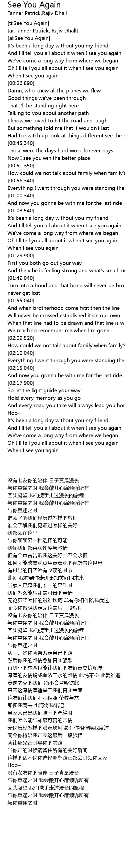 [ti:See You Again] |
