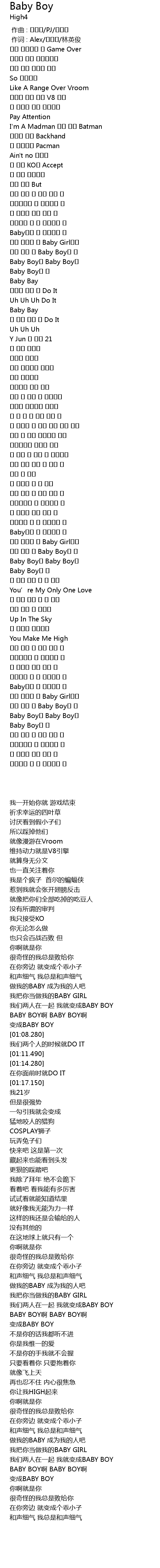 | [02:47.800] | BABY BOY啊 BABY BOY啊 |