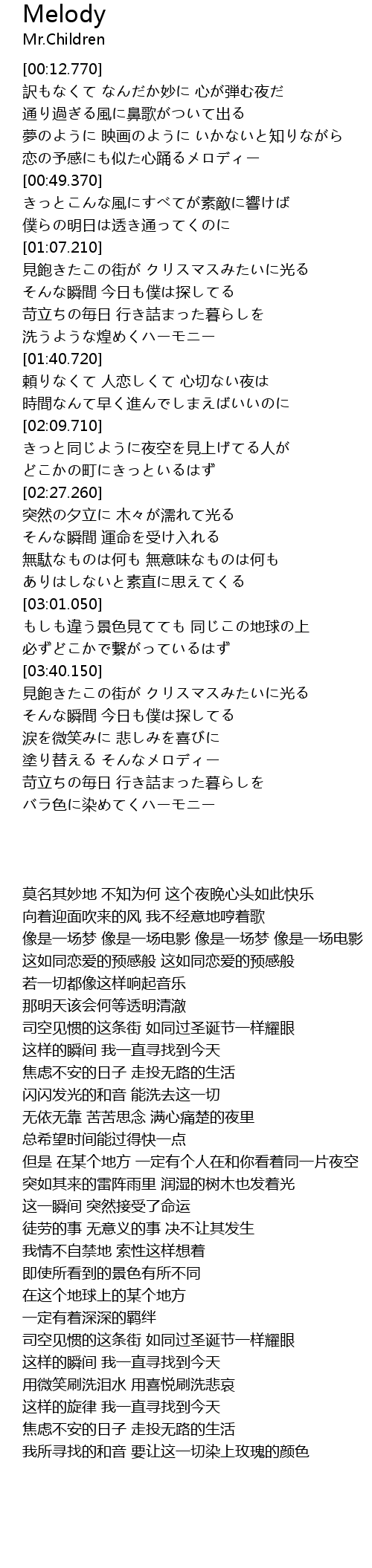 | [03:46.150] | 見飽きたこの街が クリスマスみたいに光る |
